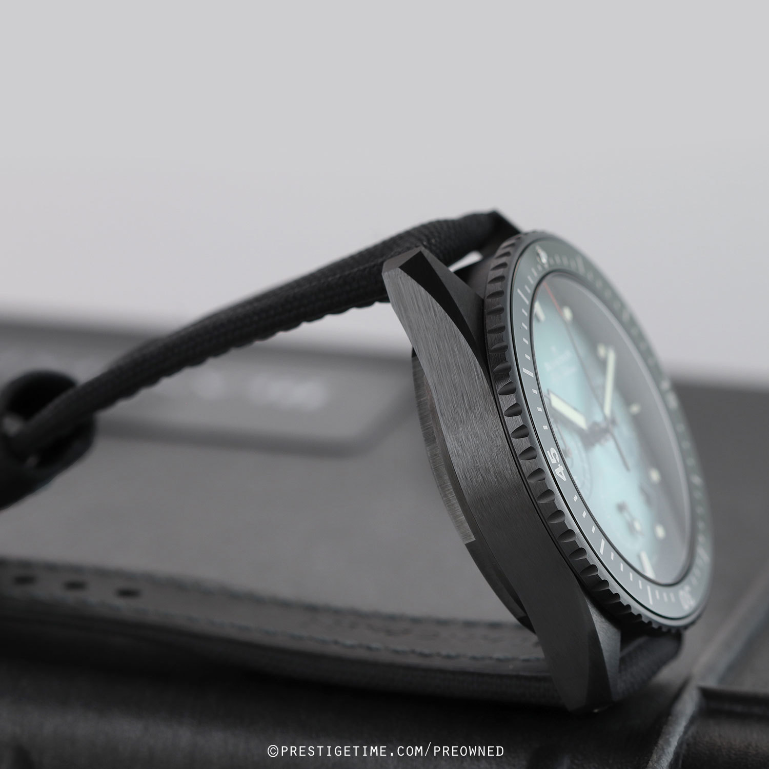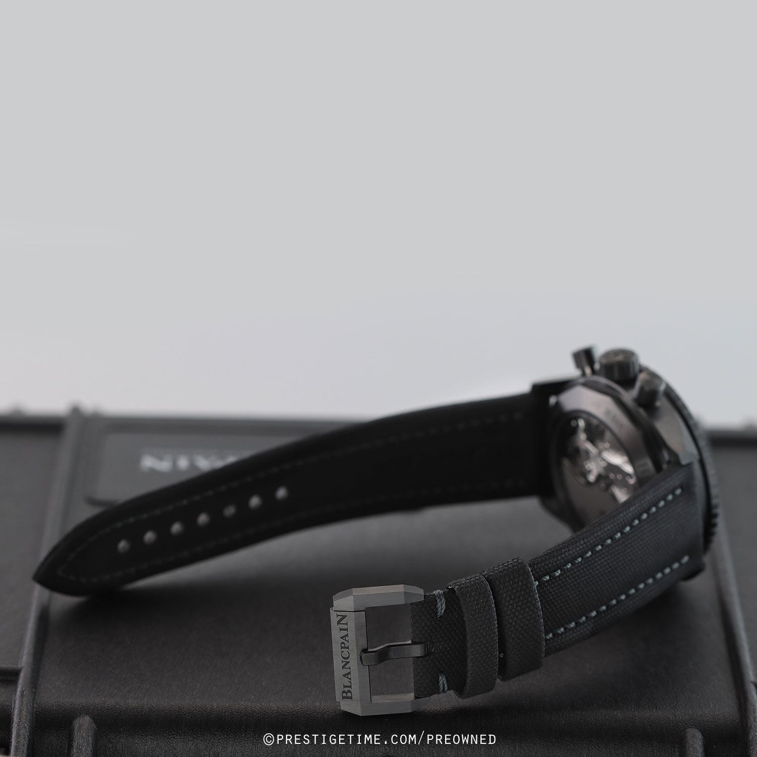 Strap: Fitted on its original Blancpain black sailcloth fabric with a black ceramic tang buckle. The strap is in excellent near new condition with the majority of its wear lifespan remaining. We would rate the strap as 97%+ condition.