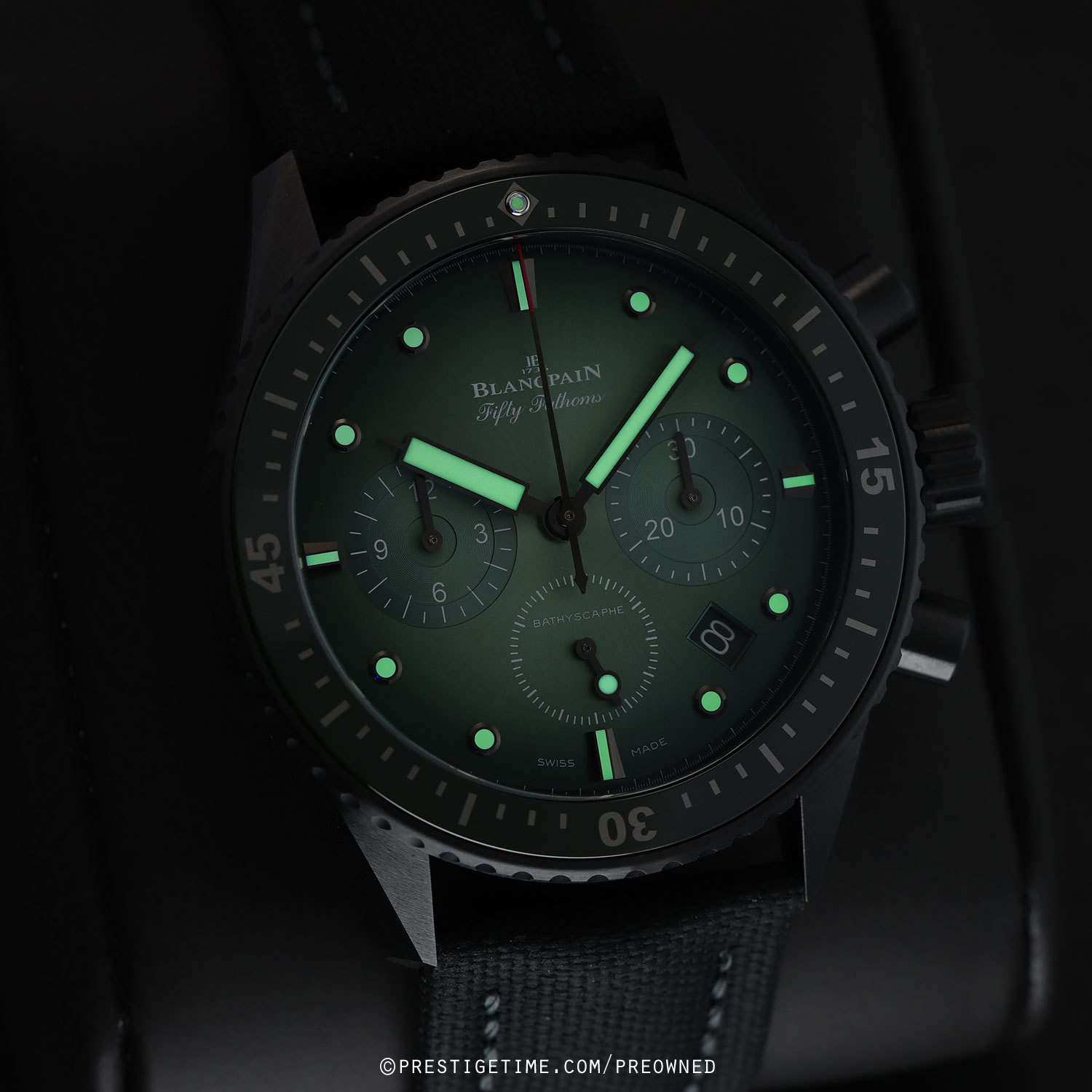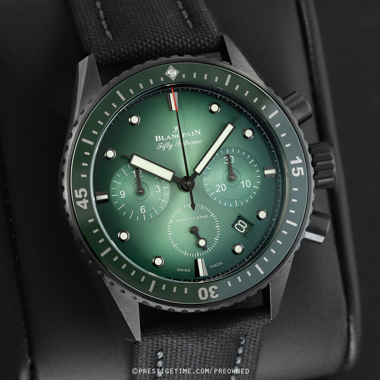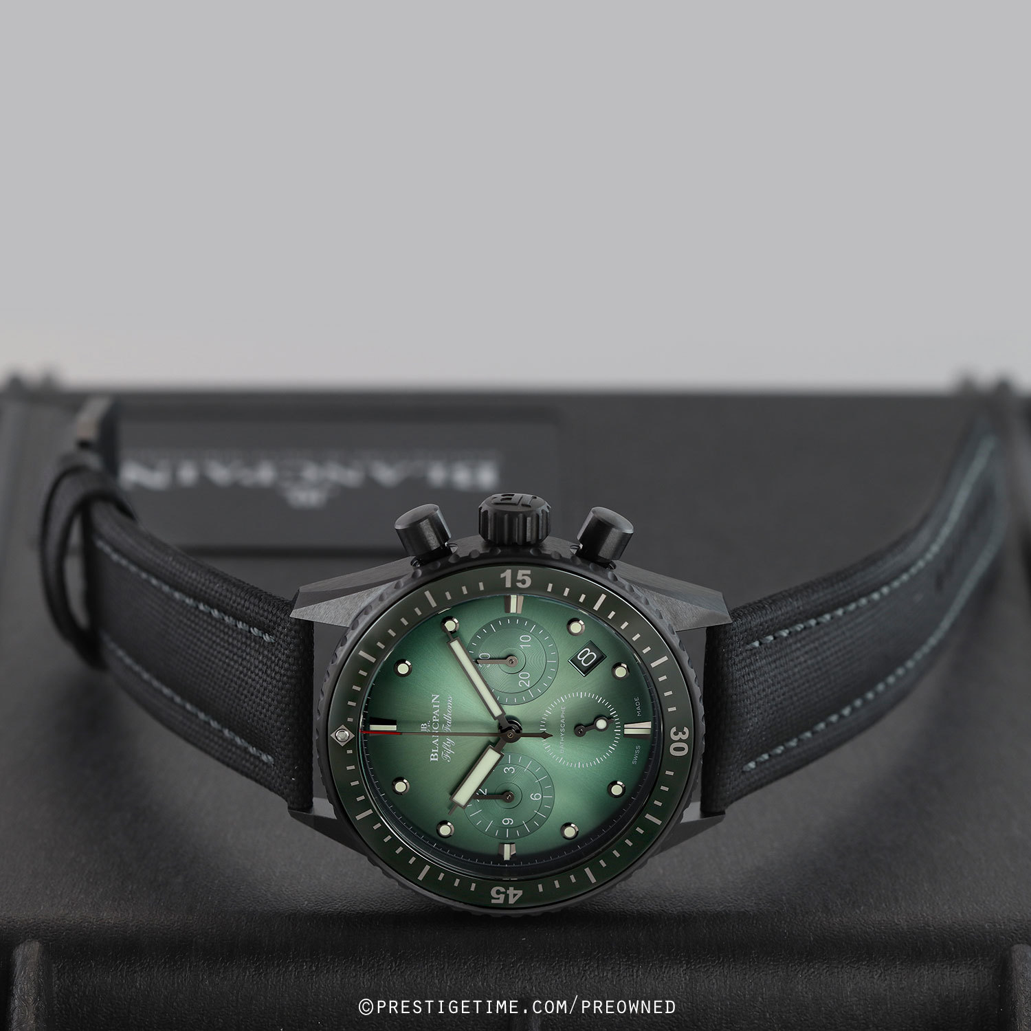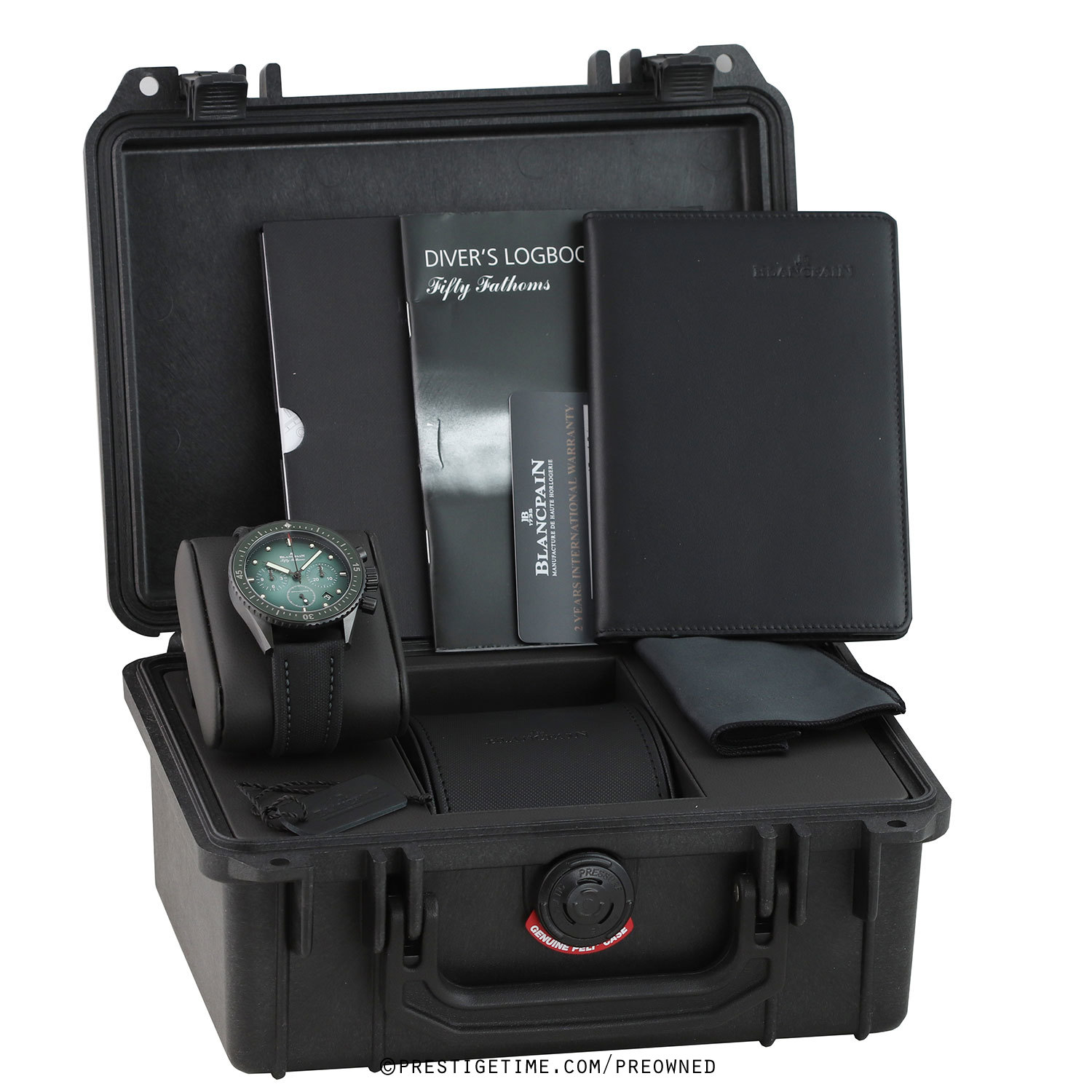 Condition: This watch is in excellent near-new condition. We would be comfortable rating this watch in 98%+ overall condition. Delivered in its original Blancpain branded 9" x 7" x 4" genuine Peli water resistant carrying/storage case & with all papers.