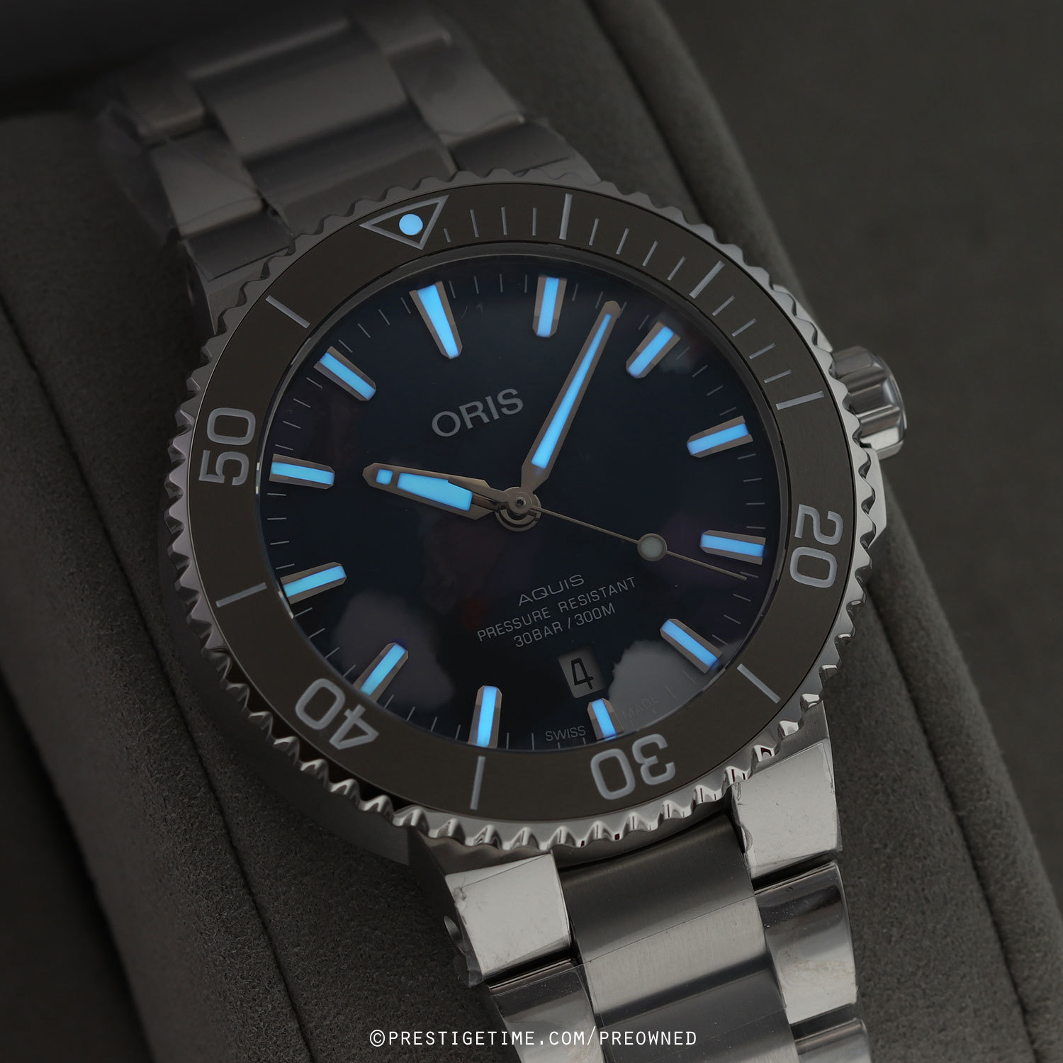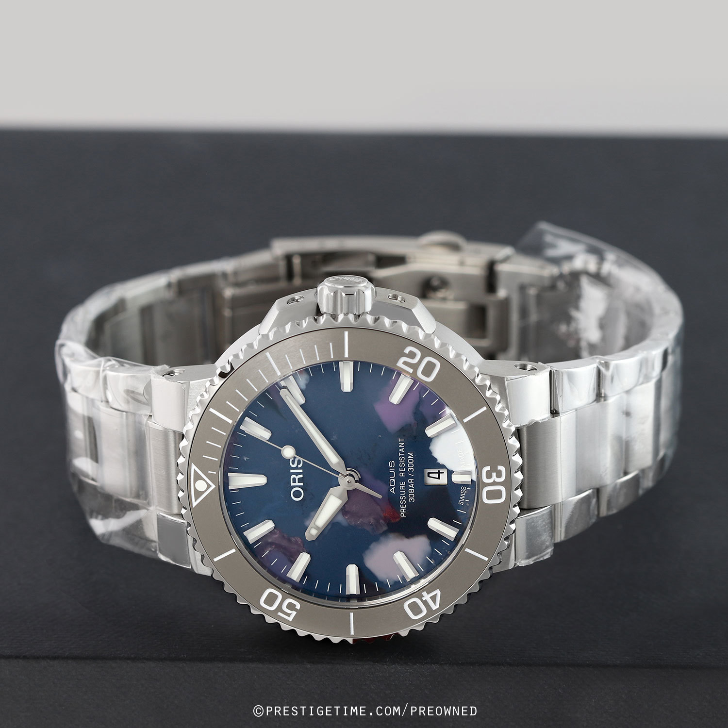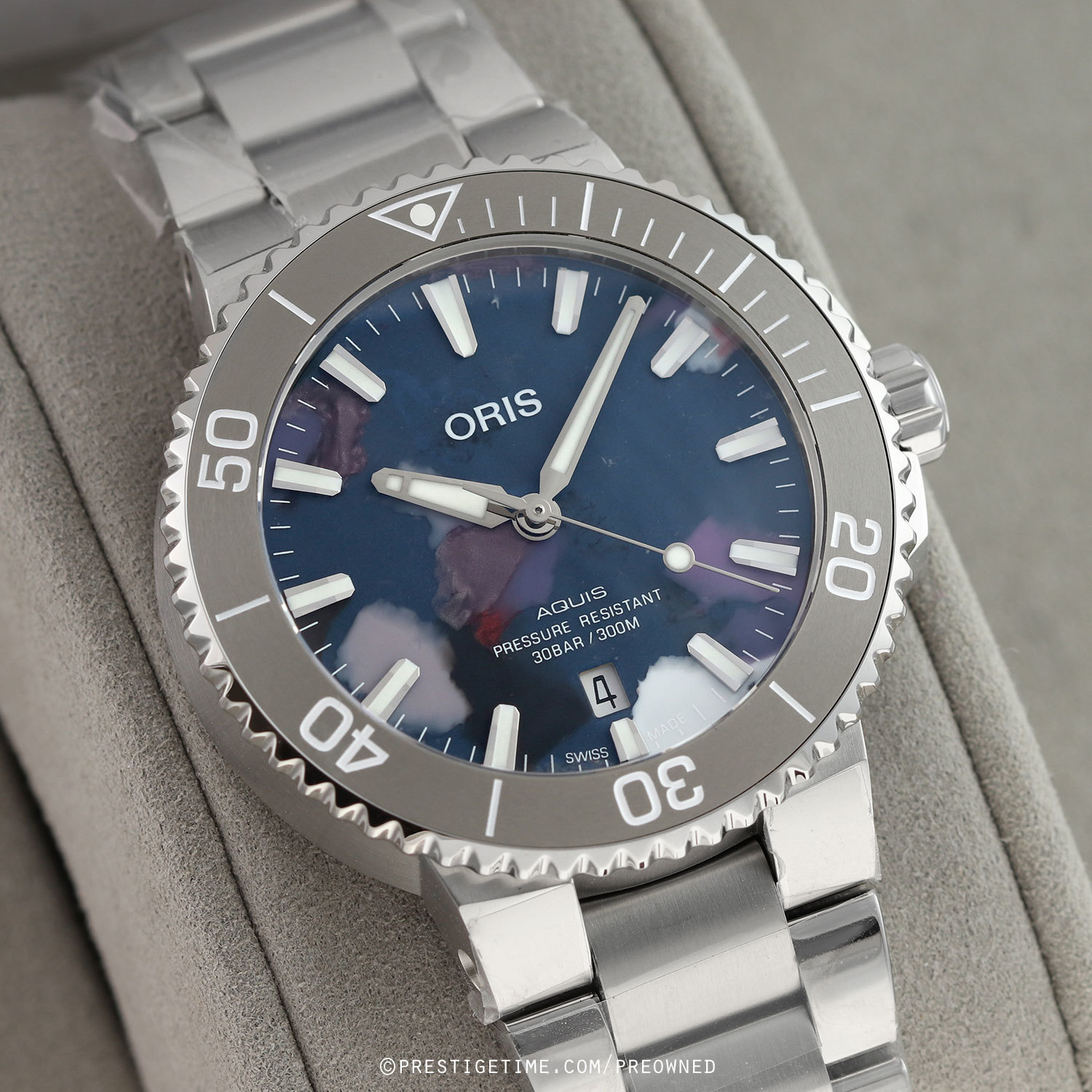 Pre-owned Oris Aquis Date Upcycle PET 41.5mm 01 733 7766 4150-Set