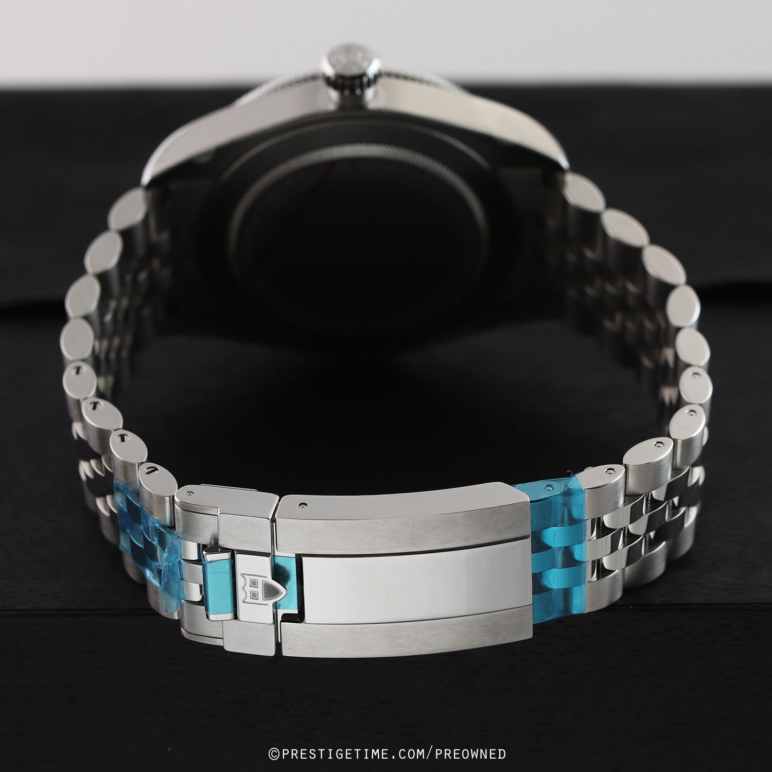 Bracelet: Fitted on its original brushed & polished stainless steel 5-link jubilee style bracelet with a brushed finished top & polished edges and with a safety locking deployant clasp. The bracelet is fully linked & will fit up to a 8" wrist.